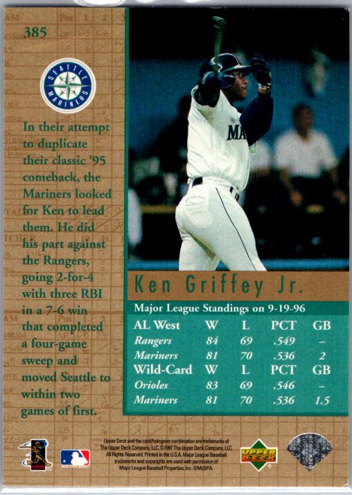 This is a really nice example of a 1997 Upper Deck #385 Ken Griffey Jr. .