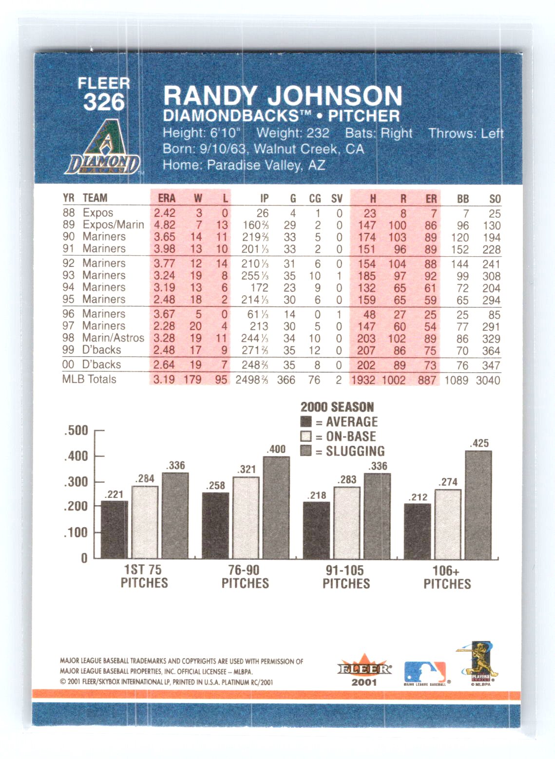 This is a really nice example of a 2001 Fleer Platinum #326 Randy Johnson .