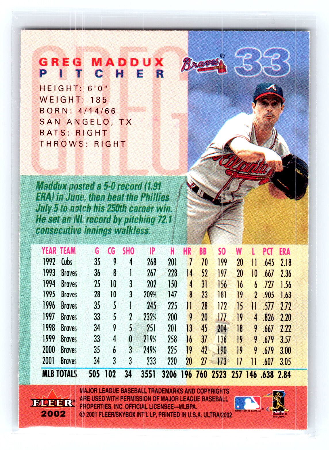 In 2002 Greg Maddux played for the Atlanta Braves.