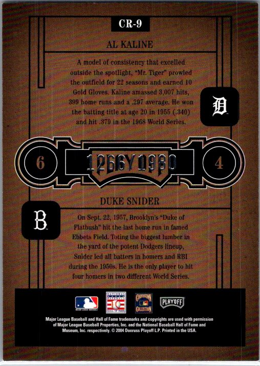 In 2004 Al Kaline / Duke Snider SN1980 played for the Detroit Tigers / Brooklyn Dodgers.