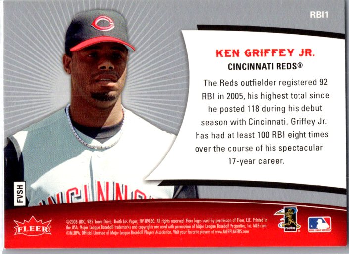 This is a really nice example of a 2006 Ultra #RBI1 Ken Griffey Jr. RBI Kings.