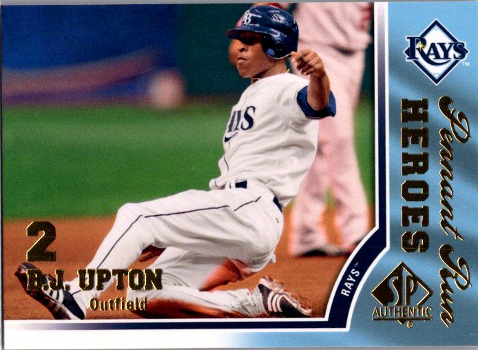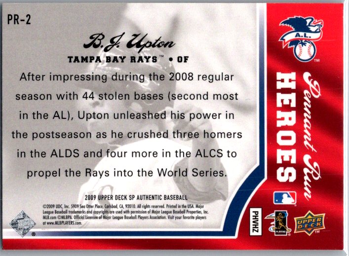 This is a really nice example of a 2009 SP Authentic #PR-2 B.J. Upton Pennant Run Heroes.