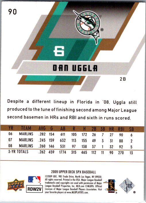 This is a really nice example of a 2009 SPx #90 Dan Uggla .