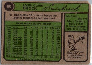 This is a really nice example of a 1974 Topps #60 Lou Brock .