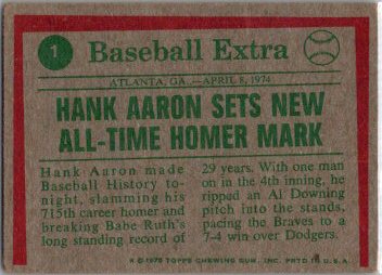 This is a really nice example of a 1975 Topps #1 Hank Aaron .