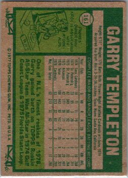 This is a really nice example of a 1977 Topps #161 Garry Templeton .
