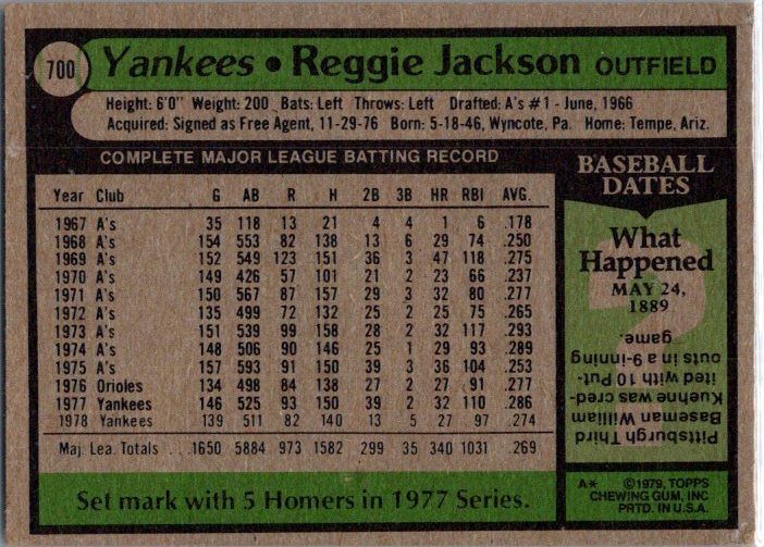 This is a really nice example of a 1979 Topps #700 Reggie Jackson .