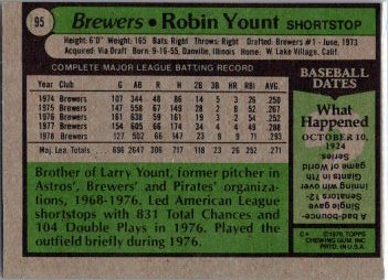 This is a really nice example of a 1979 Topps #95 Robin Yount .