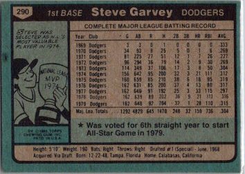 This is a really nice example of a 1980 Topps #290 Steve Garvey .