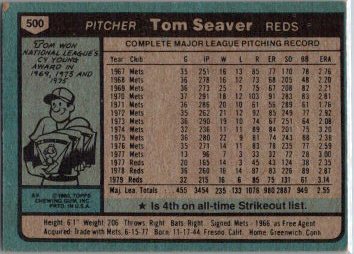 This is a really nice example of a 1980 Topps #500 Tom Seaver .