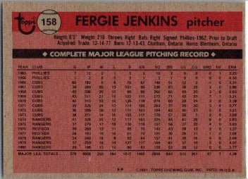 This is a really nice example of a 1981 Topps #158 Fergie Jenkins .
