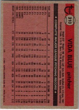 This is a really nice example of a 1981 Topps #310 Vida Blue .