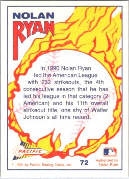 This is a really nice example of a 1991 Pacific Nolan Ryan Texas Express I #72 Nolan Ryan .
