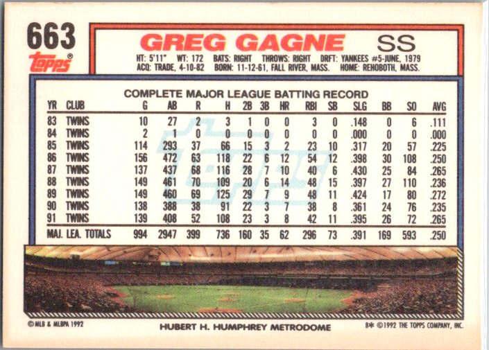 1992 Topps #663 Greg Gagne