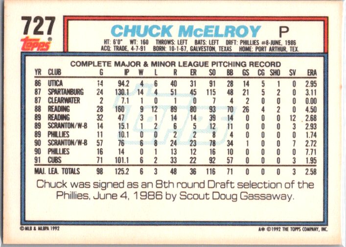 1992 Topps #727 Chuck McElroy