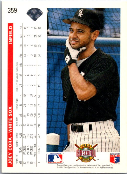 This is a really nice example of a 1992 Upper Deck #359 Joey Cora .