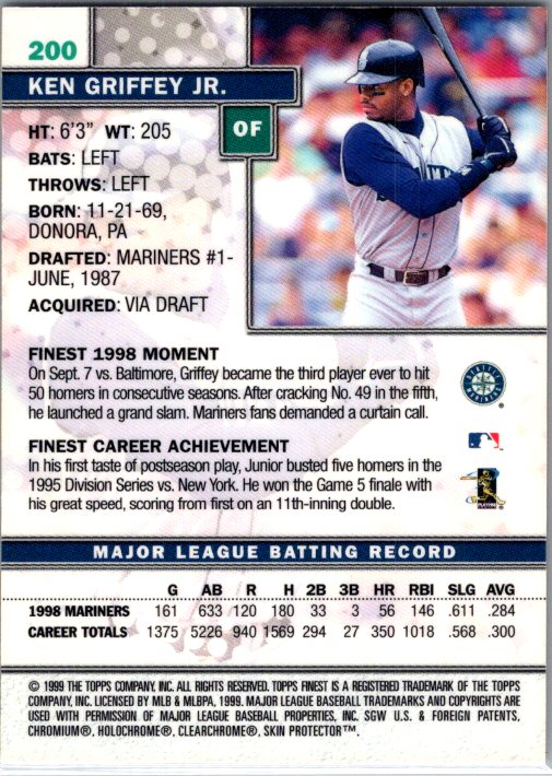 This is a really nice example of a 1999 Finest #200 Ken Griffey Jr. .