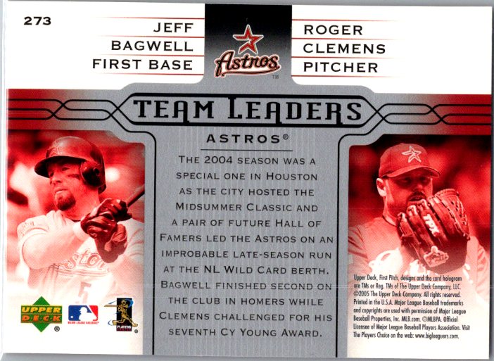 This is a really nice example of a 2005 Upper Deck First Pitch #273 Jeff Bagwell / Roger Clemens .