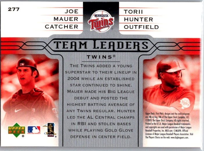 This is a really nice example of a 2005 Upper Deck First Pitch #277 Joe Mauer / Torii Hunter .