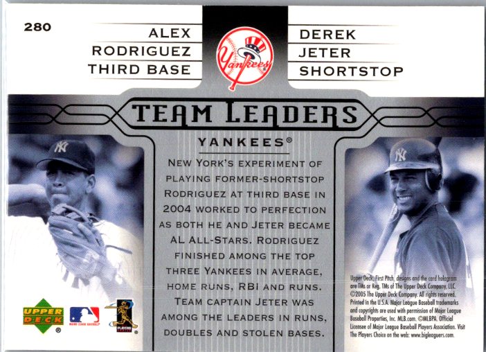 This is a really nice example of a 2005 Upper Deck First Pitch #280 Alex Rodriguez / Derek Jeter .