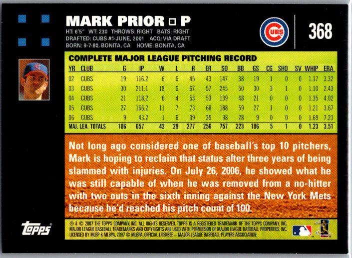 2007 Topps #368 Mark Prior