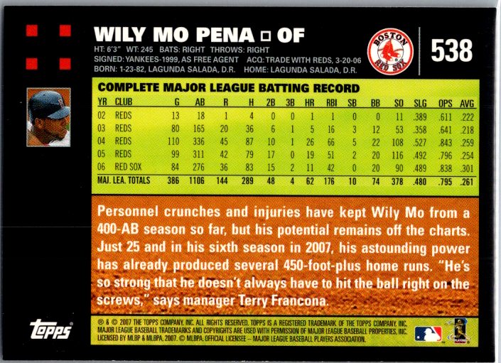 2007 Topps #538 Wily Mo Pena