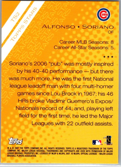 2007 Topps #TS2 Alfonso Soriano Topps Stars