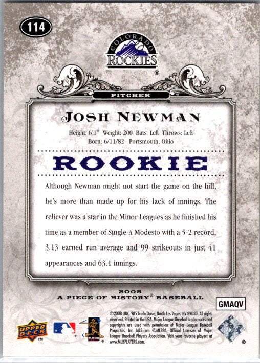 2008 Upper Deck A Piece of History #114 Josh Newman