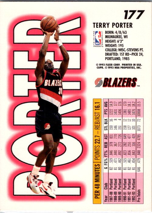 This is a really nice example of a 1993-94 Fleer #177 Terry Porter .