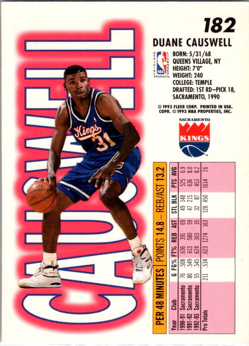 This is a really nice example of a 1993-94 Fleer #182 Duane Causwell .