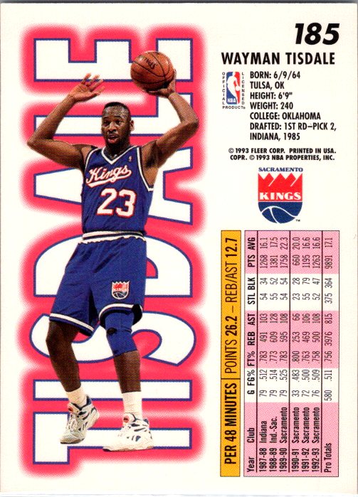 1993-94 Fleer #185 Wayman Tisdale