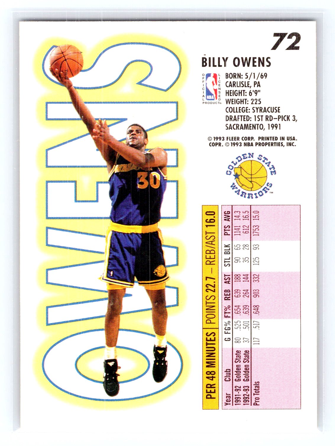 This is a really nice example of a 1993-94 Fleer #72 Billy Owens .