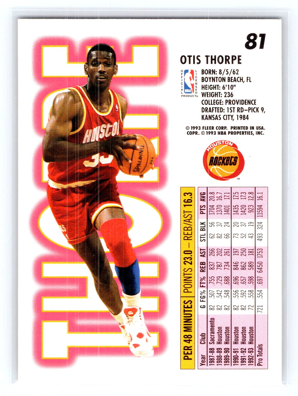 This is a really nice example of a 1993-94 Fleer #81 Otis Thorpe .