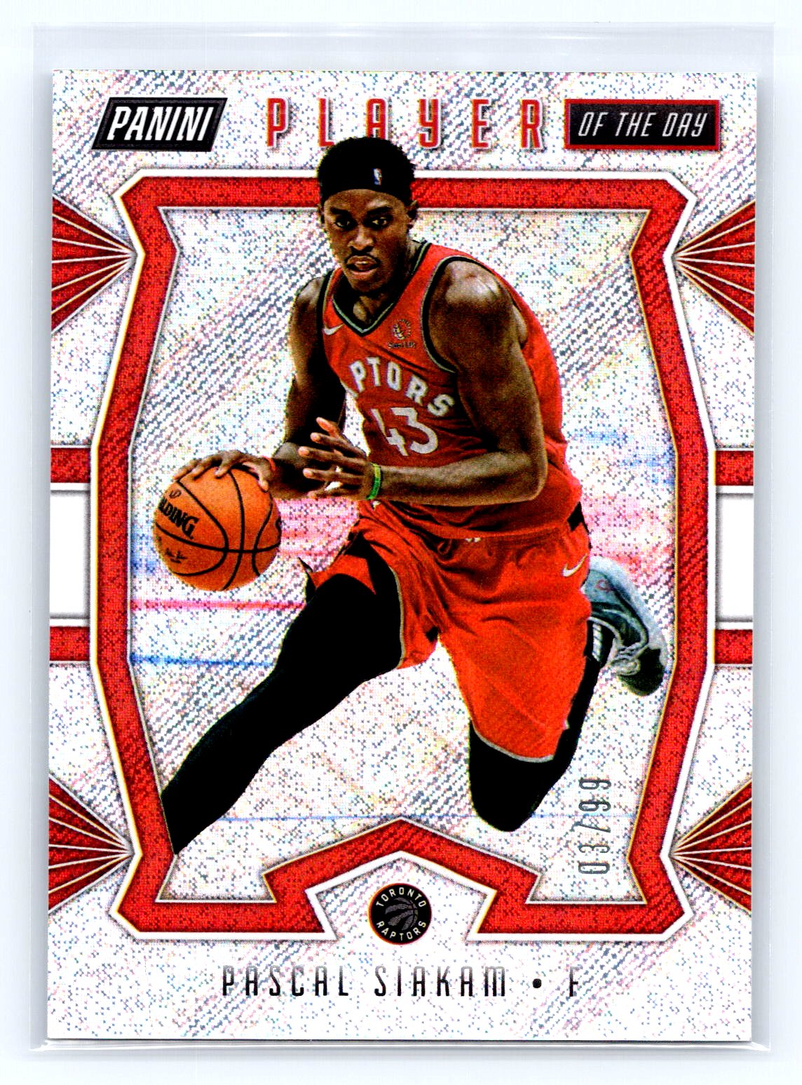 This is a really nice example of a 2019-20 Panini Player of the Day #27 Pascal Siakam Rapture.