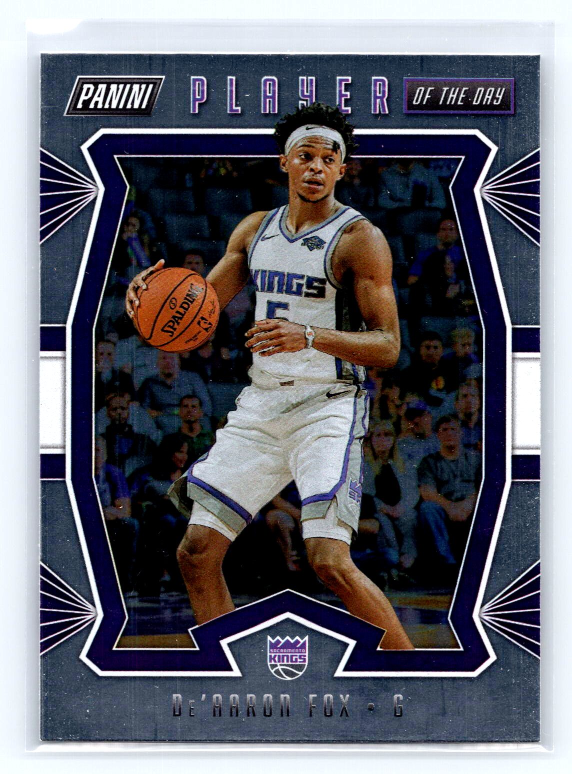 This is a really nice example of a 2019-20 Panini Player of the Day #39 De'Aaron Fox Silver.