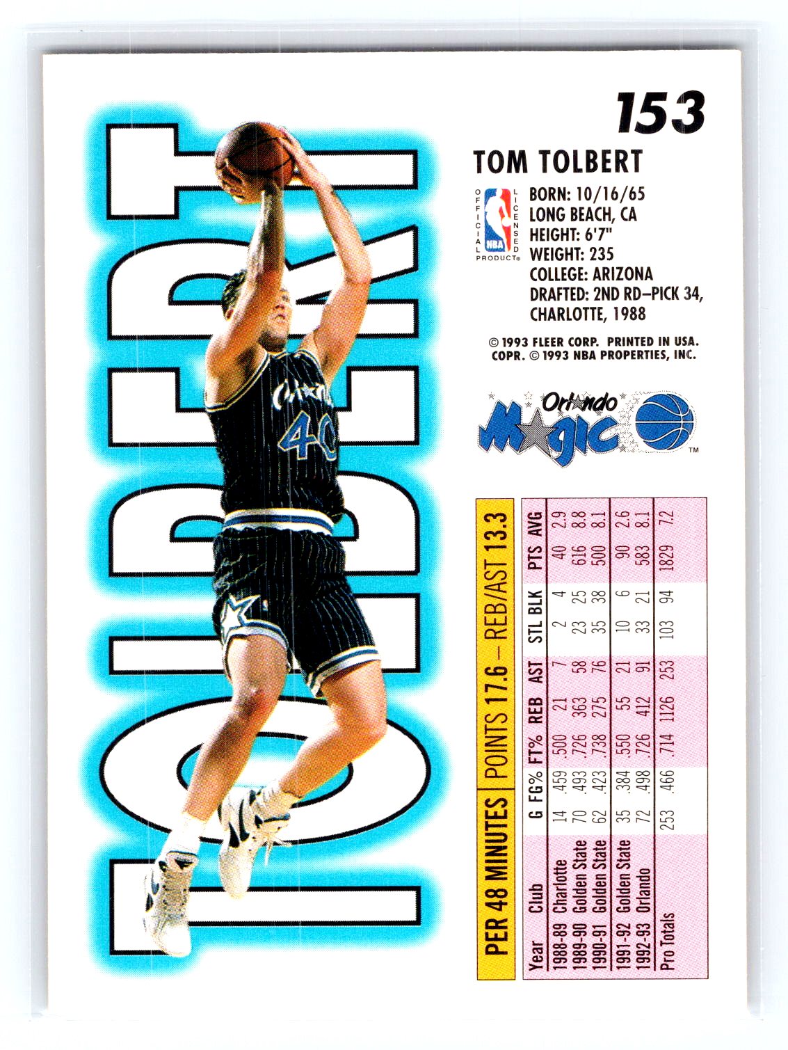 1993-94 Fleer #153 Tom Tolbert