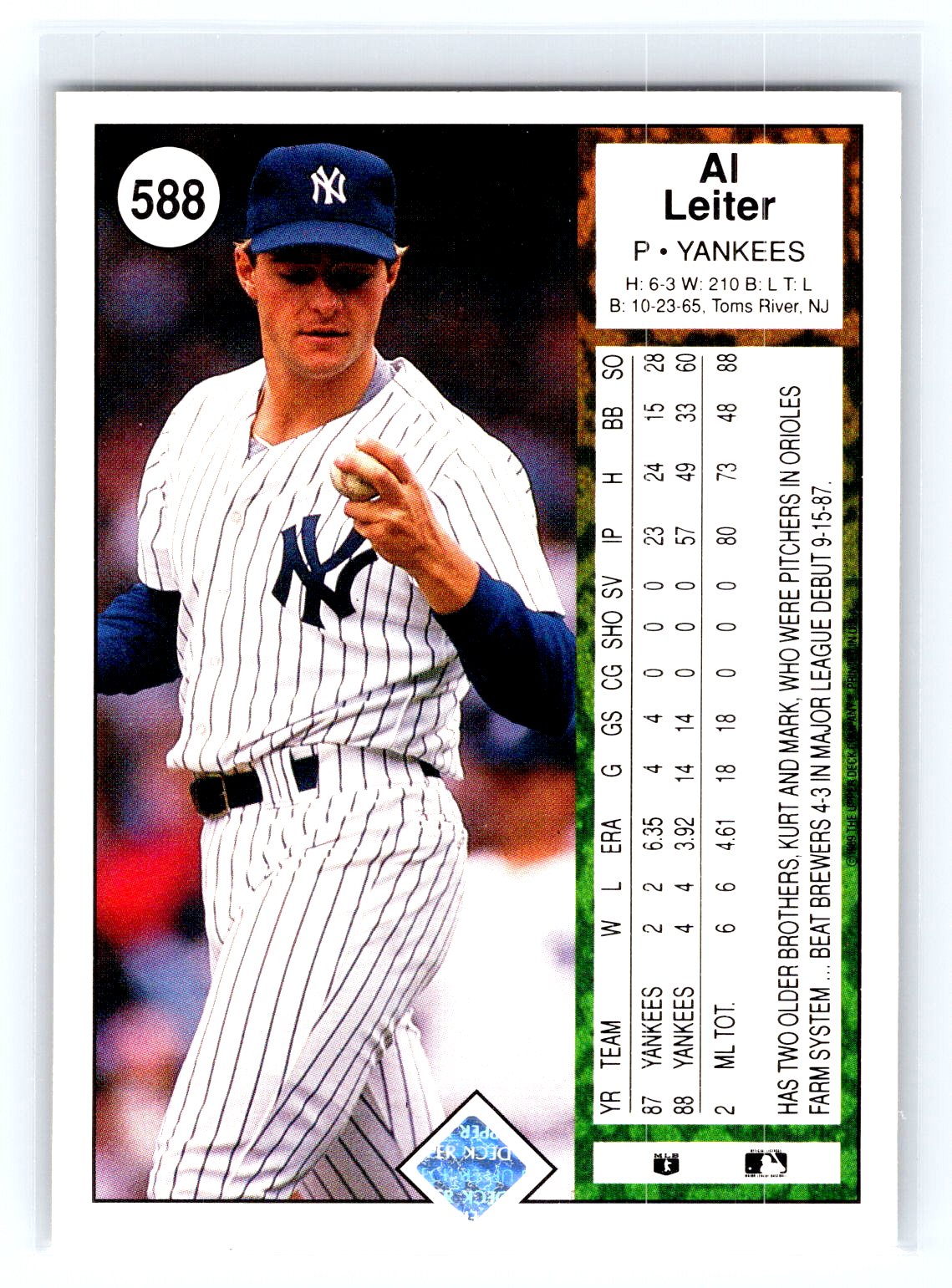 This is a really nice example of a 1989 Upper Deck #588 Al Leiter .