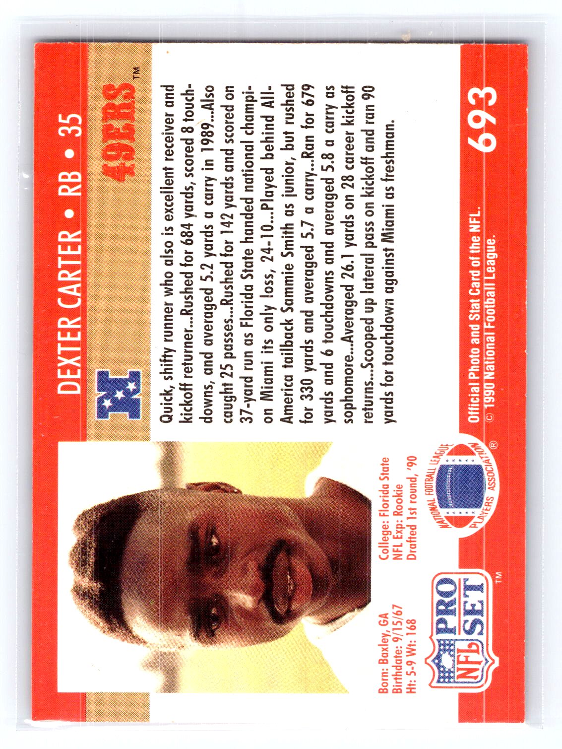 This is a really nice example of a 1990 Pro Set #693 Dexter Carter .