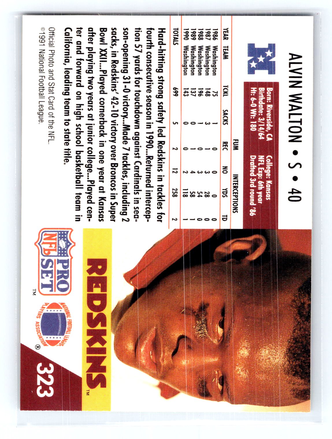 This is a really nice example of a 1991-92 Pro Set Super Bowl XXVI Binder #323 Alvin Walton .