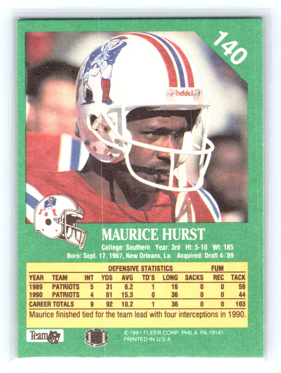 This is a really nice example of a 1991 Fleer #140 Maurice Hurst .
