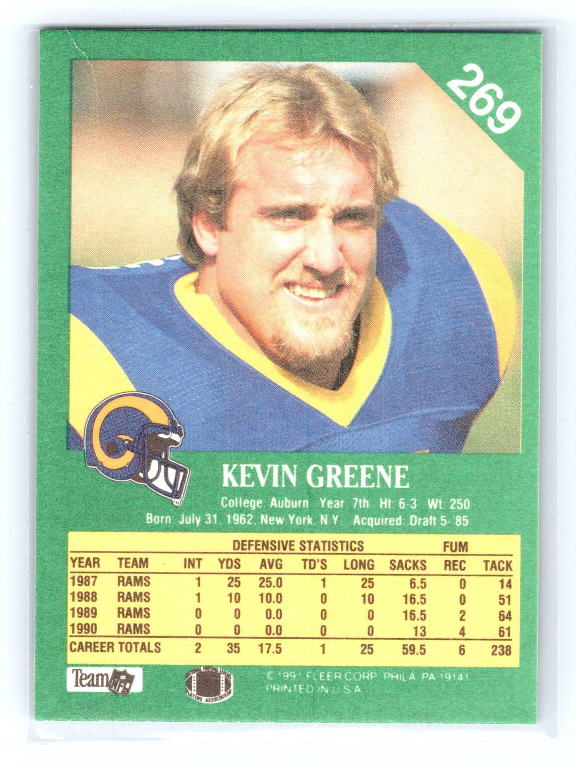 This is a really nice example of a 1991 Fleer #269 Kevin Greene .