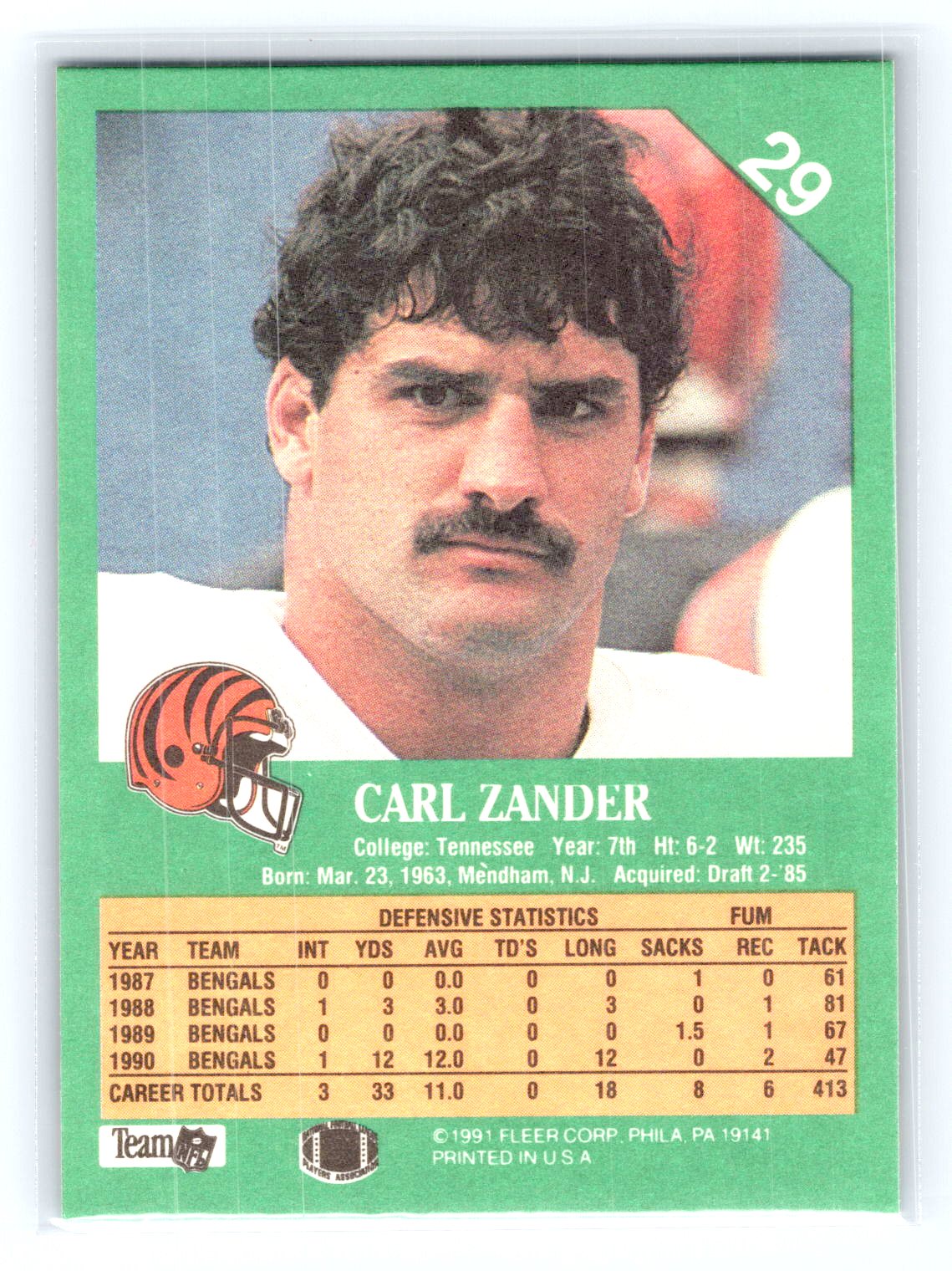 In 1991 Carl Zander played for the Cincinnati Bengals.