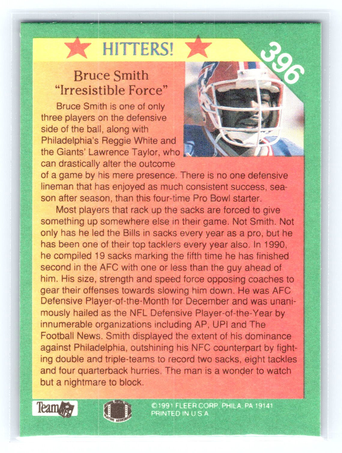 This is a really nice example of a 1991 Fleer #396 Bruce Smith .