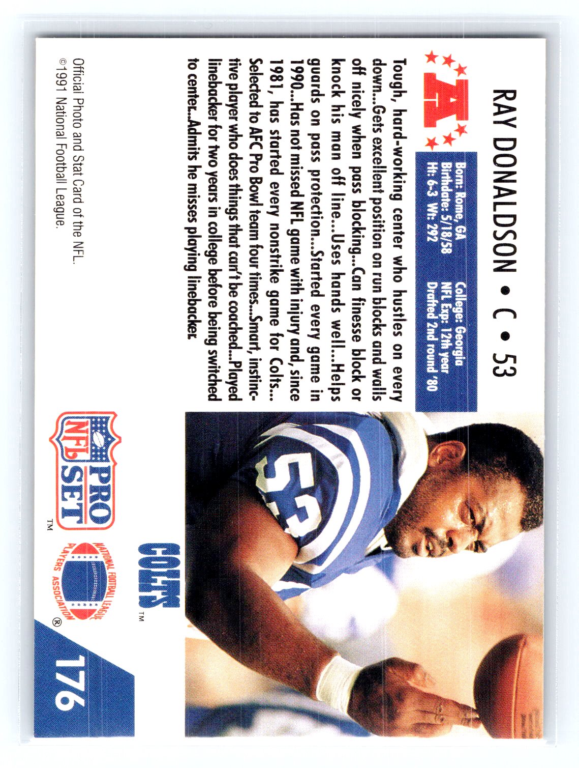 This is a really nice example of a 1991 Pro Set #176 Ray Donaldson .