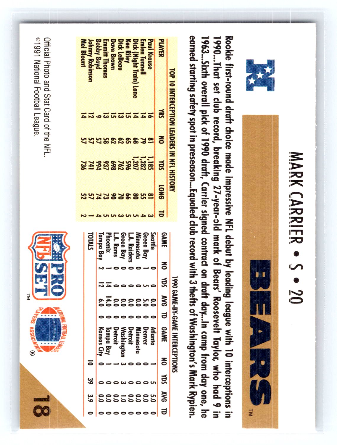 1991 Pro Set #18 Mark Carrier