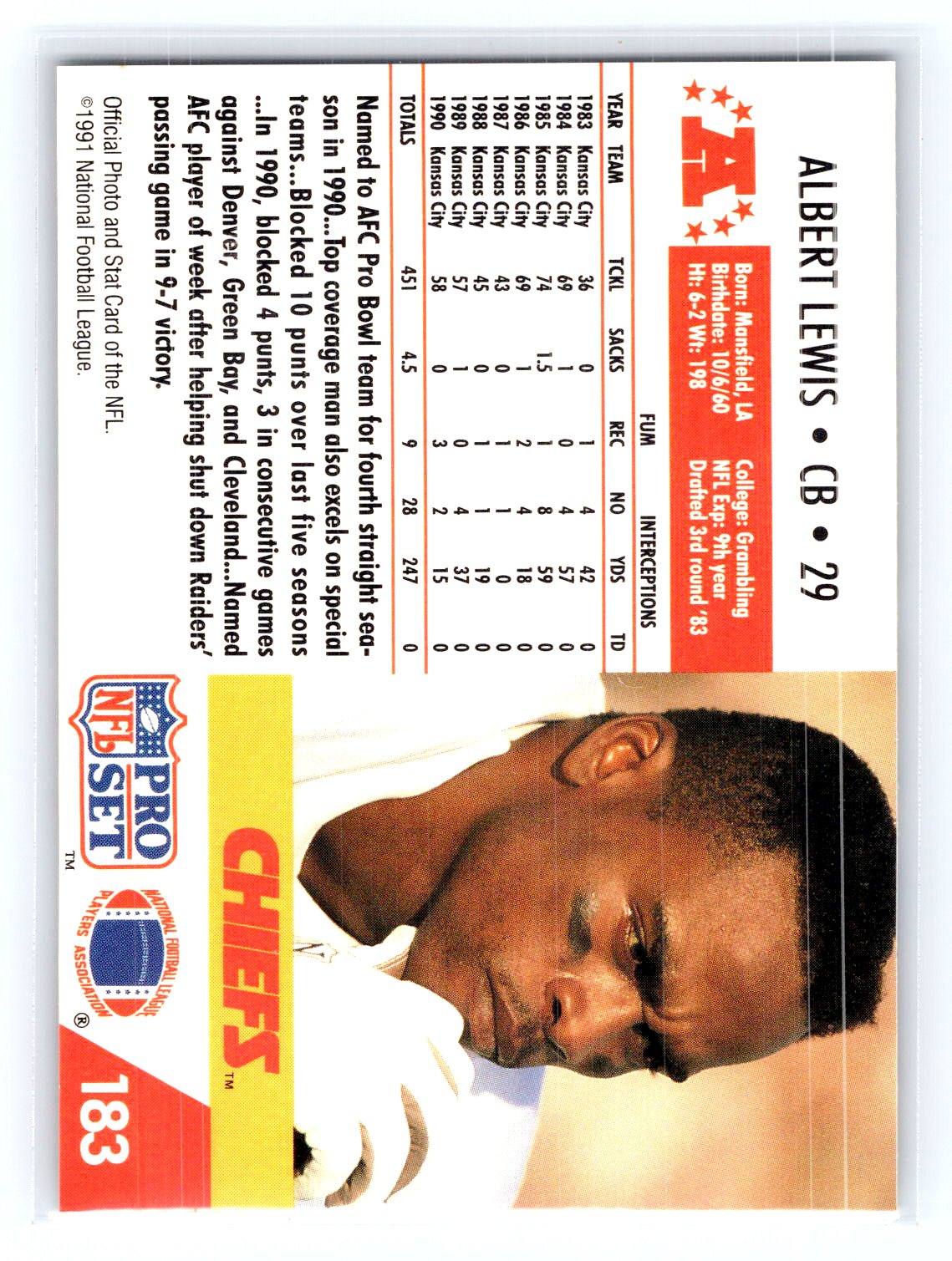 In 1991 Albert Lewis played for the Kansas City Chiefs.