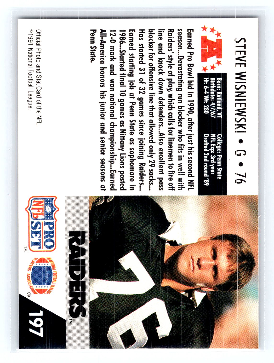1991 Pro Set #197 Steve Wisniewski