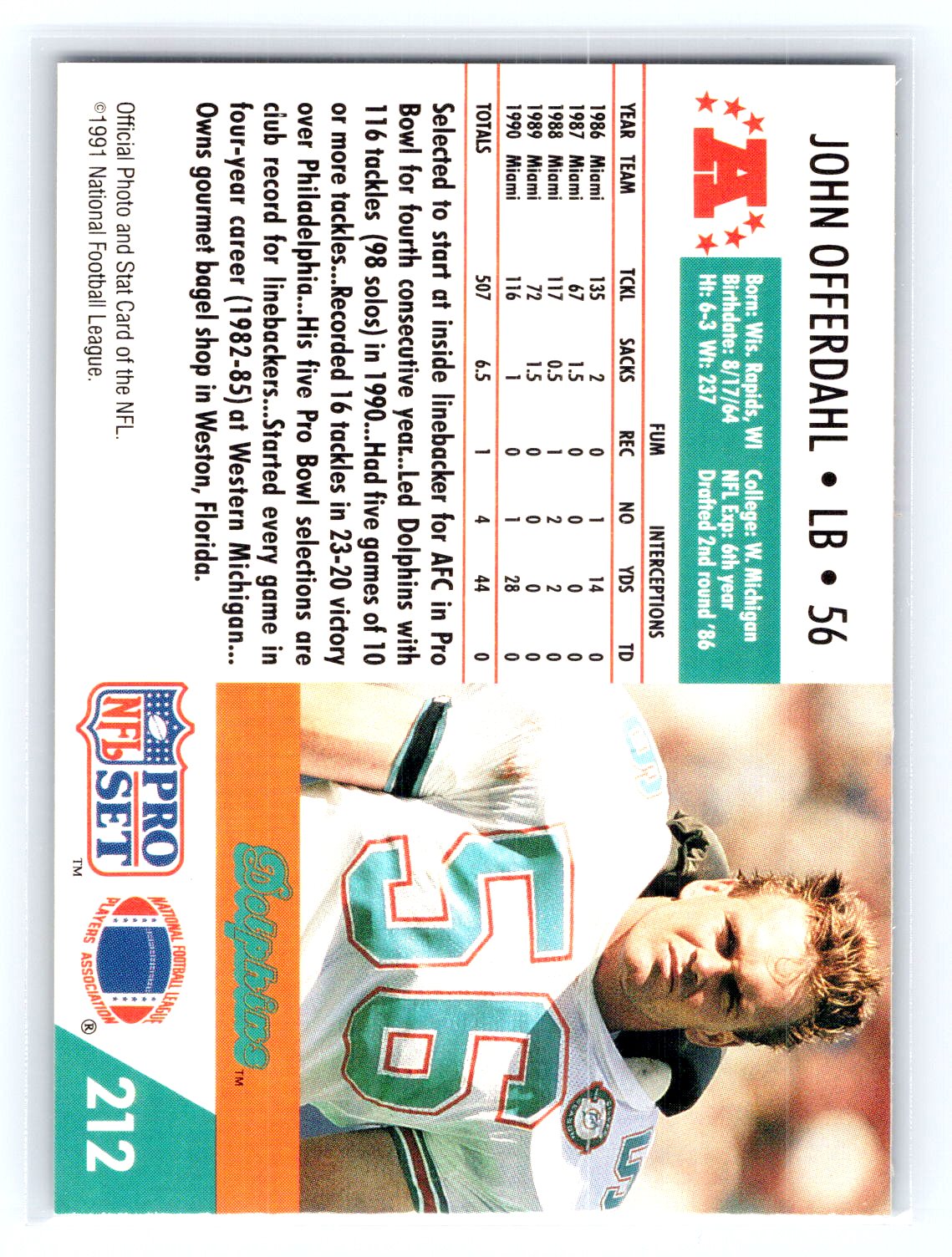This is a really nice example of a 1991 Pro Set #212 John Offerdahl .