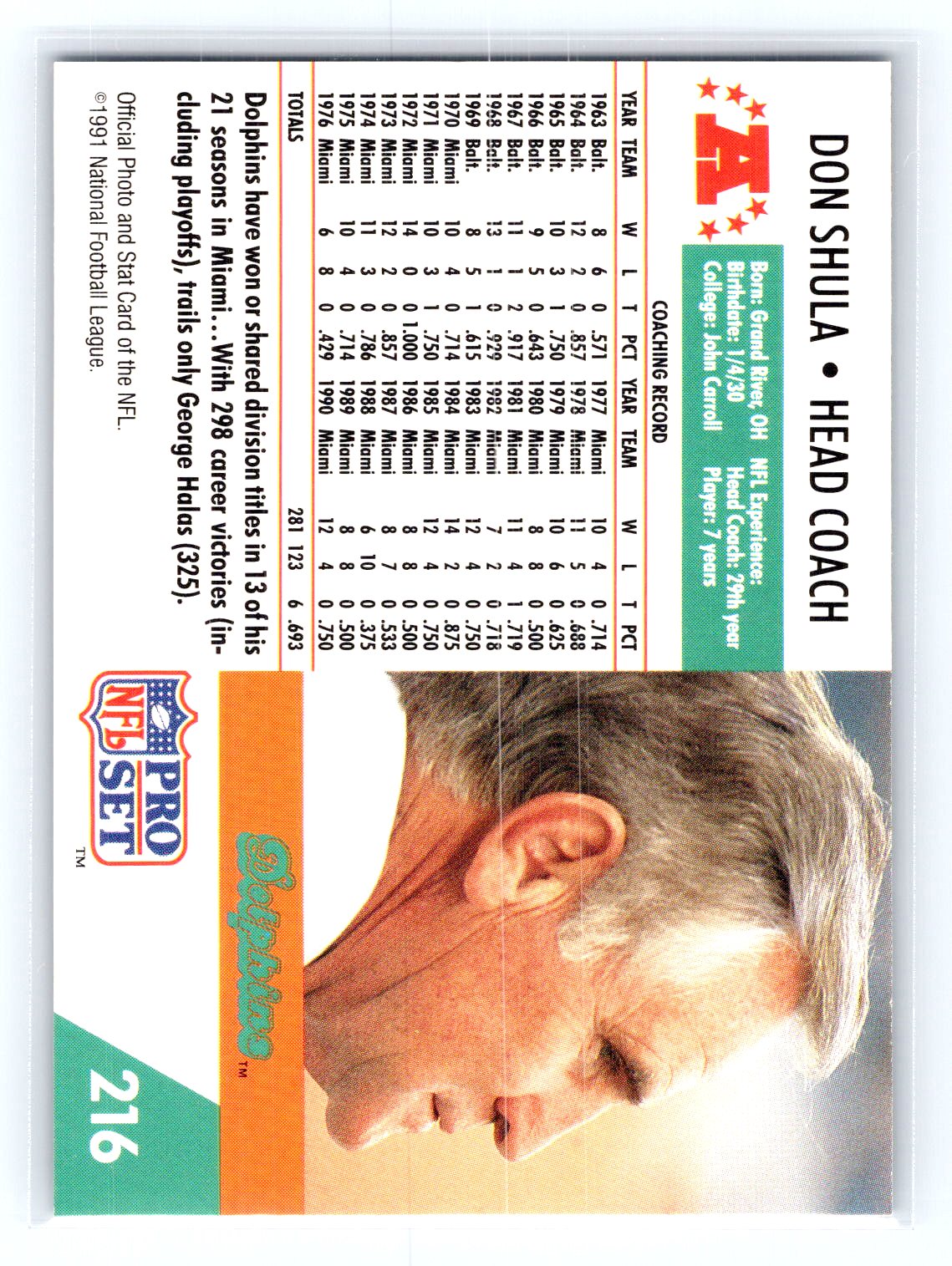 This is a really nice example of a 1991 Pro Set #216 Don Shula .