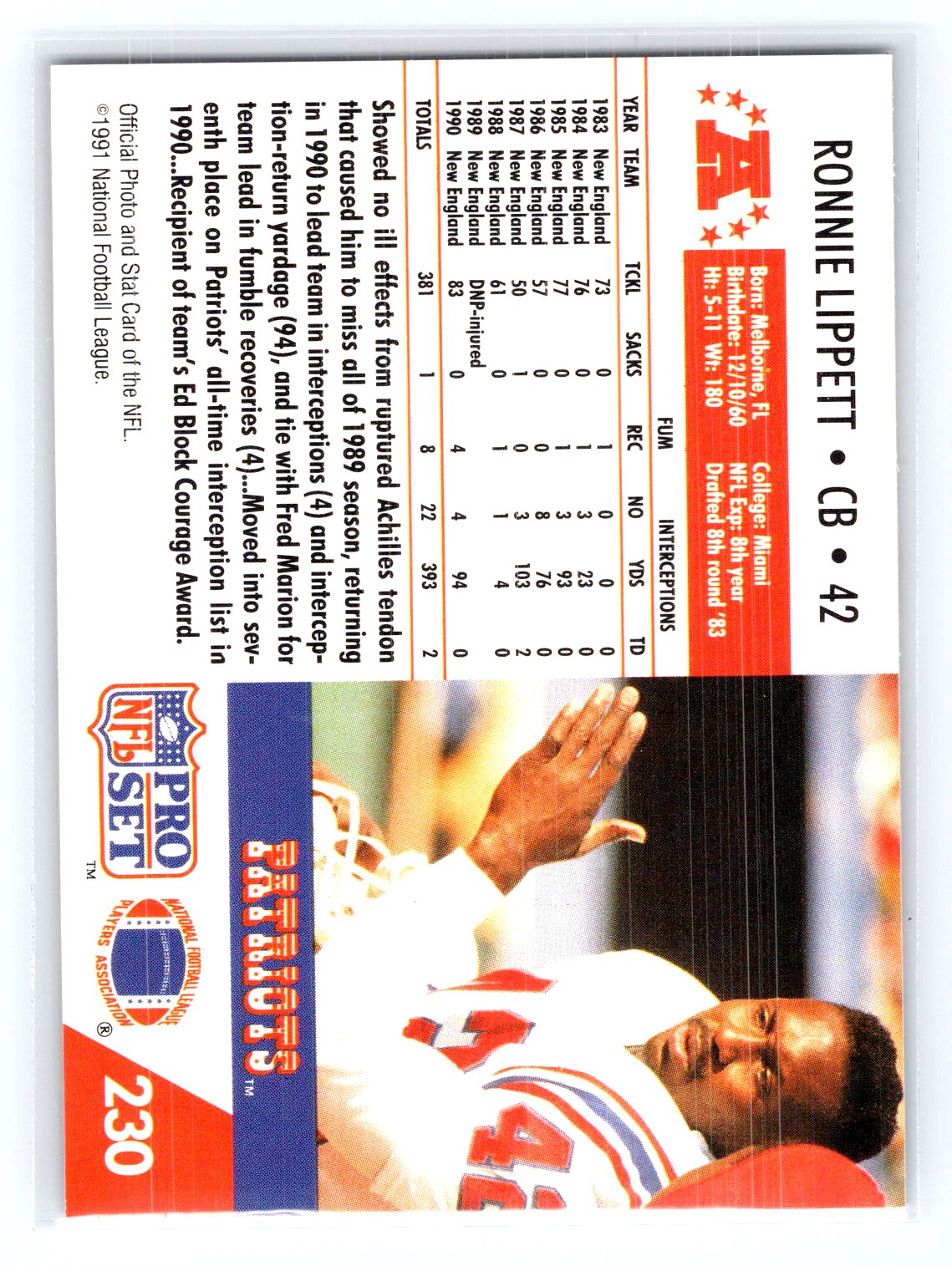 This is a really nice example of a 1991 Pro Set #230 Ronnie Lippett .